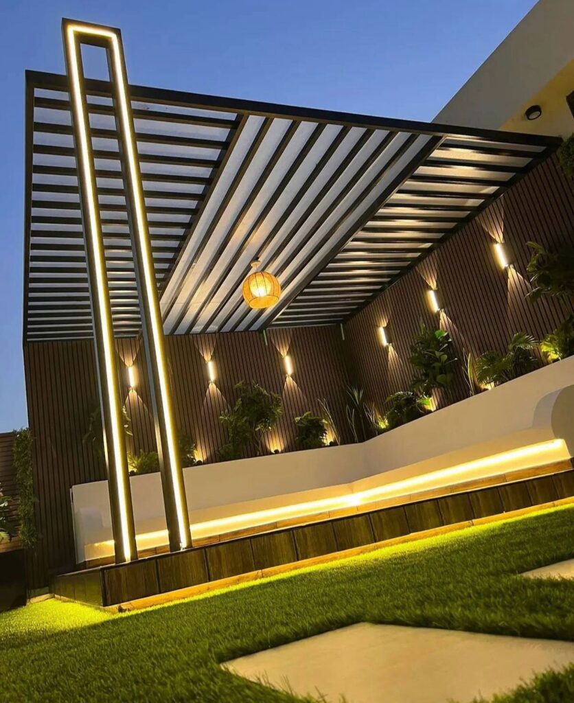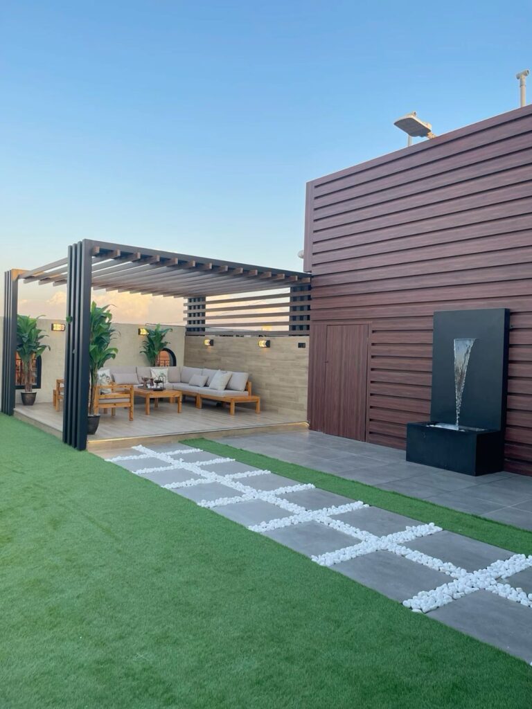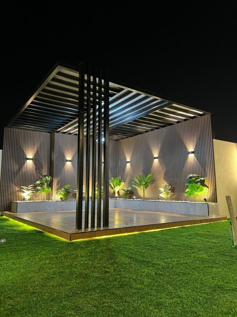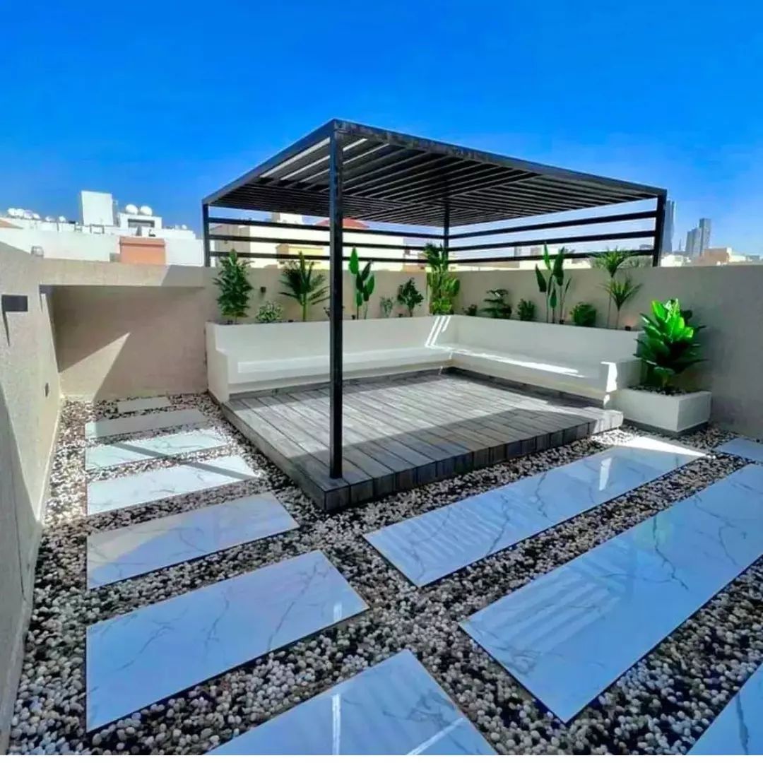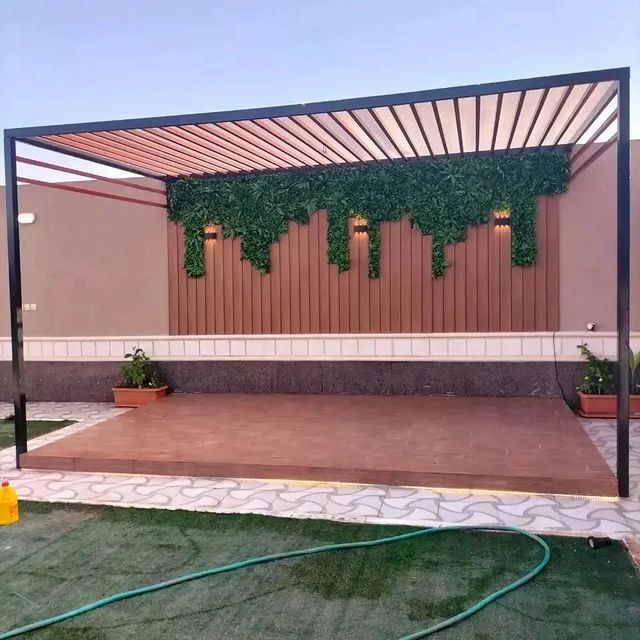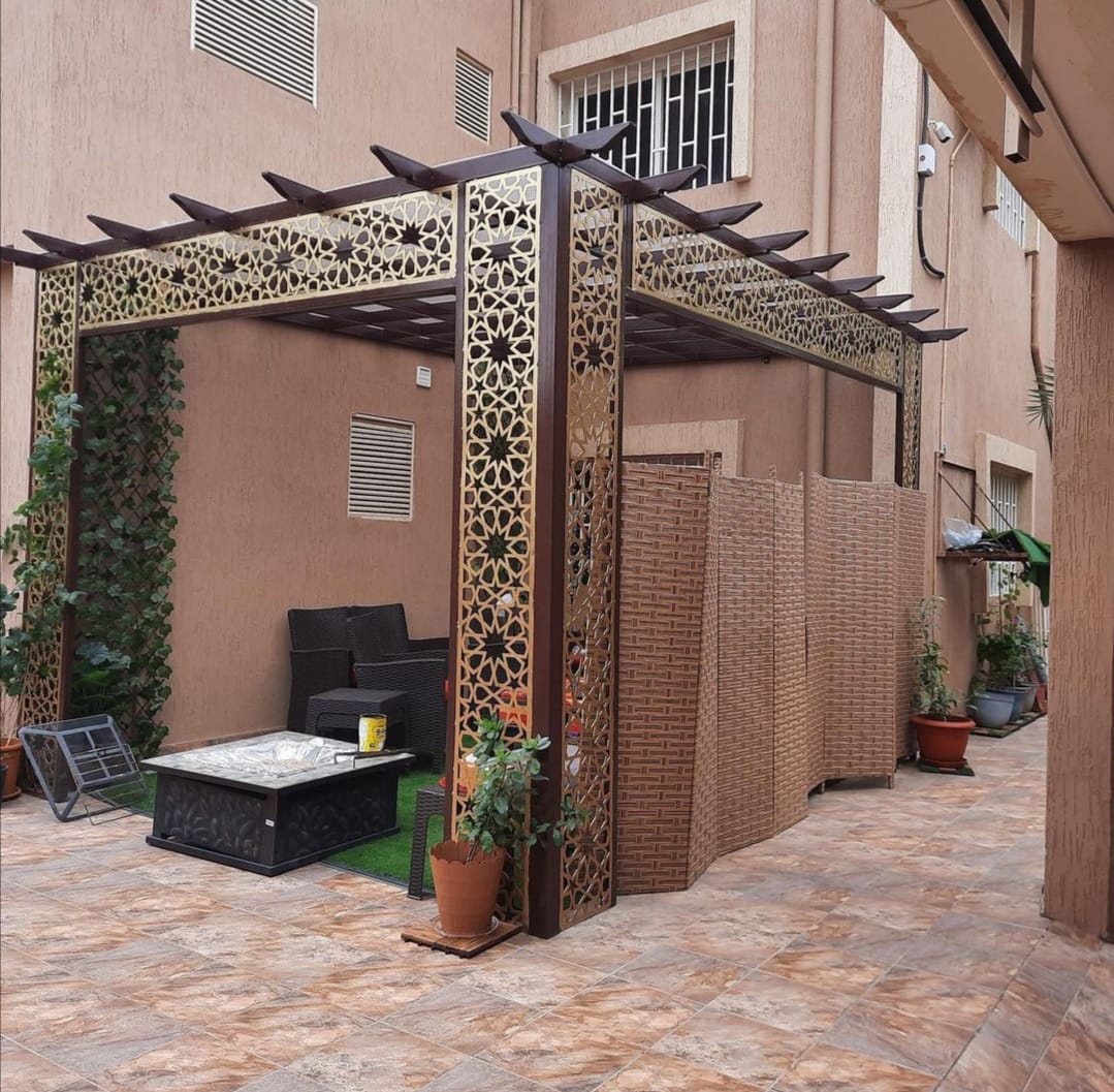 تصميم وتنفيذ المظلات والجلسات الخارجية لتوفير الراحة والظل.