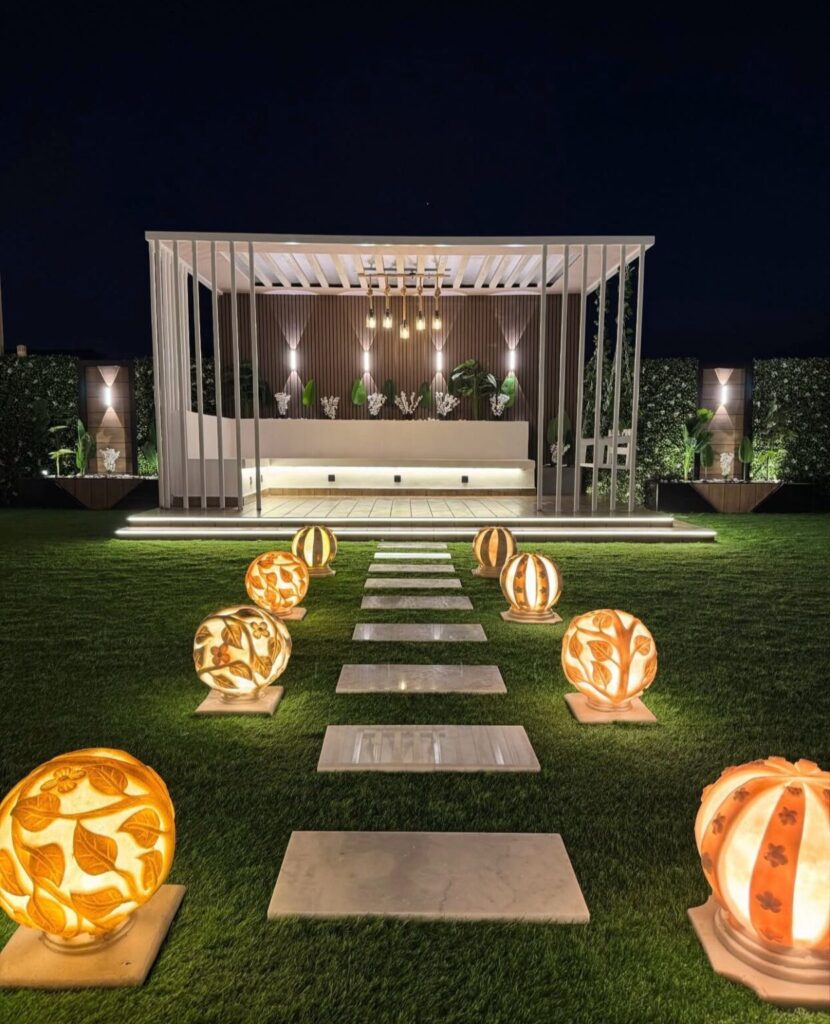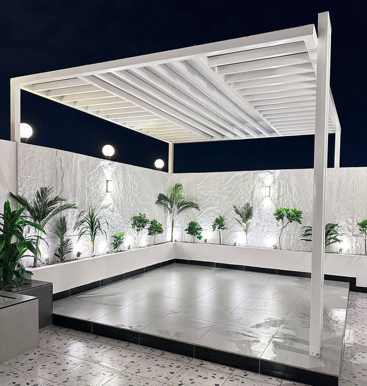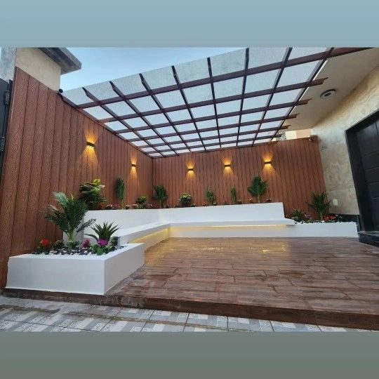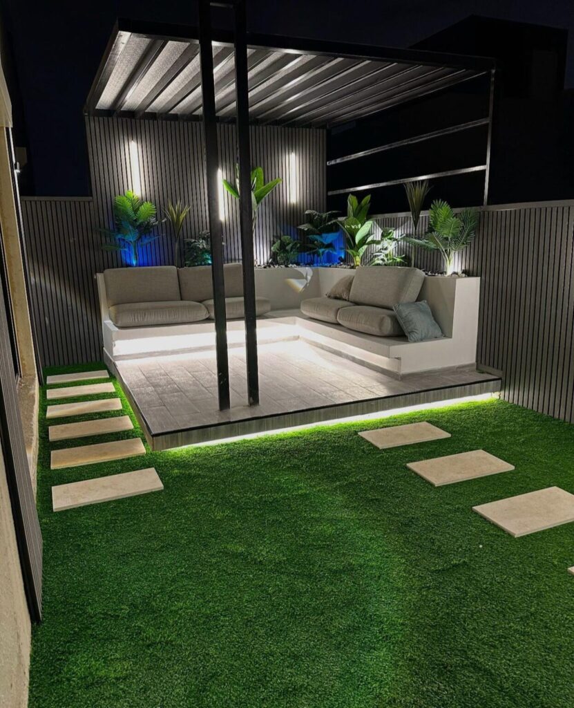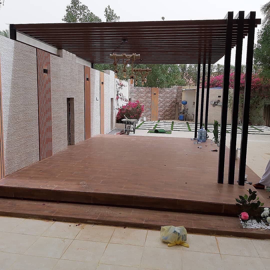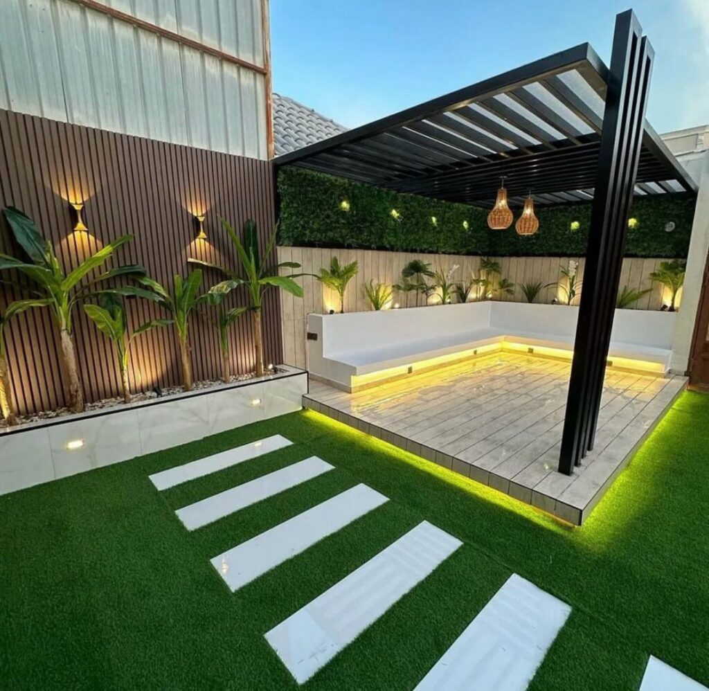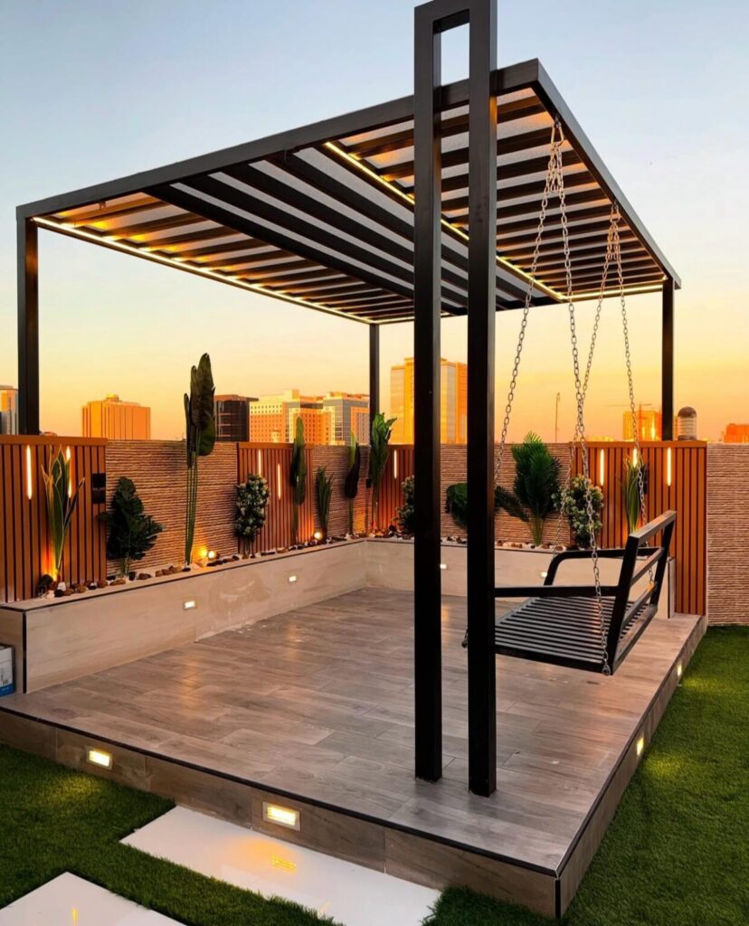 تصميم وتنفيذ المظلات والجلسات الخارجية لتوفير الراحة والظل.