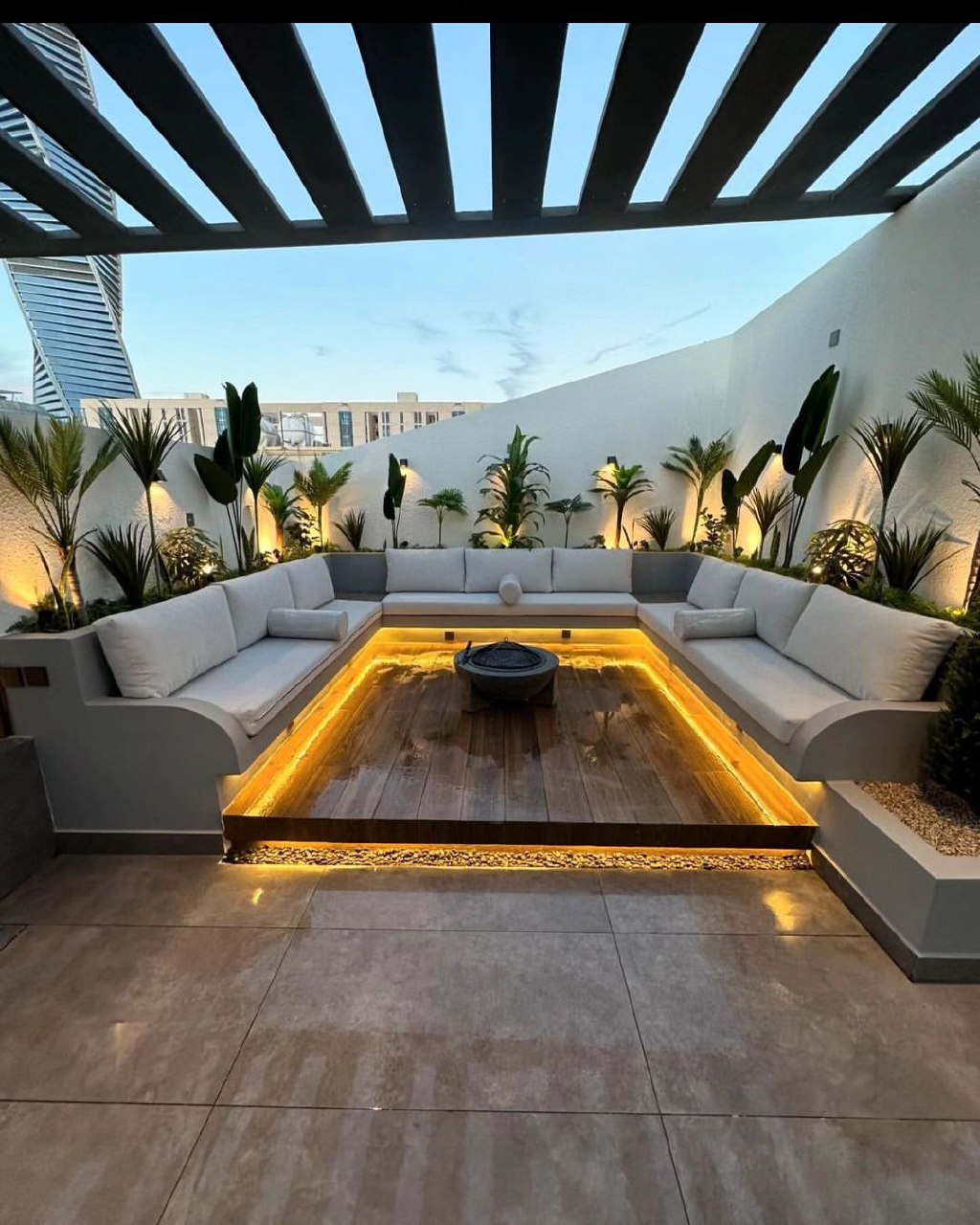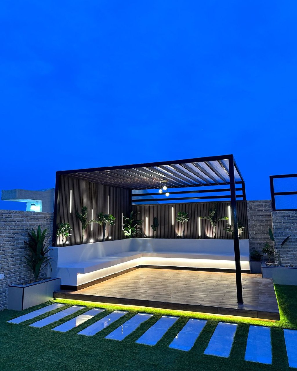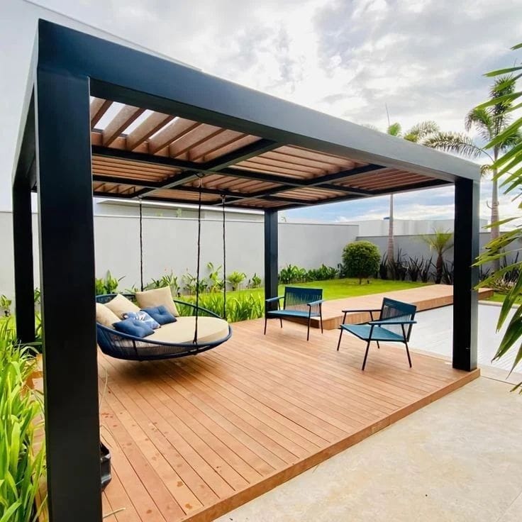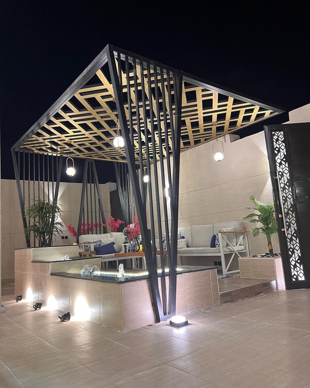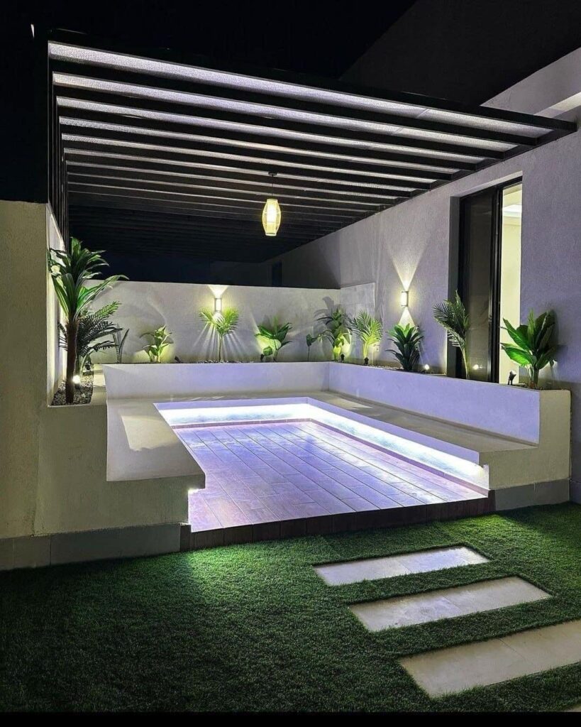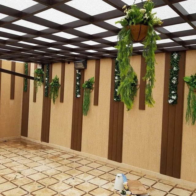 تصميم وتنفيذ المظلات والجلسات الخارجية لتوفير الراحة والظل.