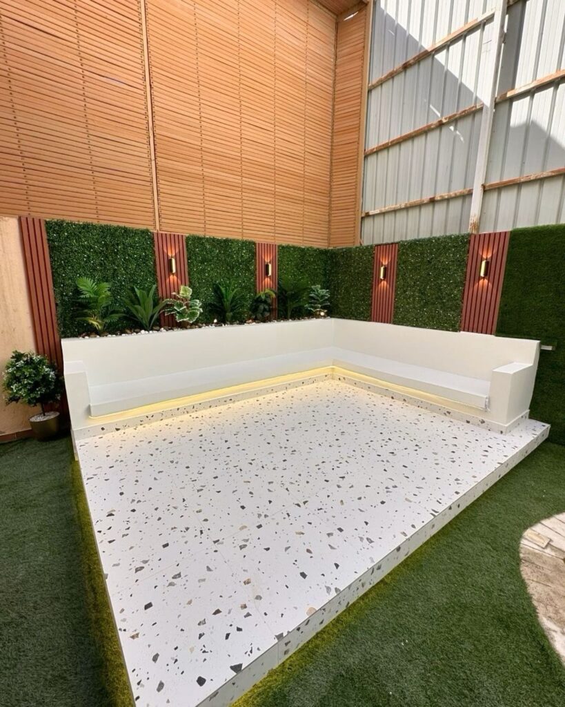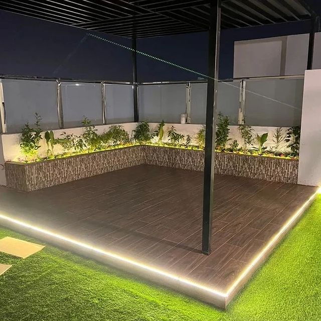 نستخدم مواد متينة مقاومة للعوامل الجوية، مع الاهتمام بنظام التصريف والتربة المناسبة للأحواض الزراعية، لضمان نمو صحي للنباتات ومظهر أنيق يدوم طويلًا، مما يضفي لمسة جمالية متناسقة على الحدائق والمداخل والجلسات الخارجية.