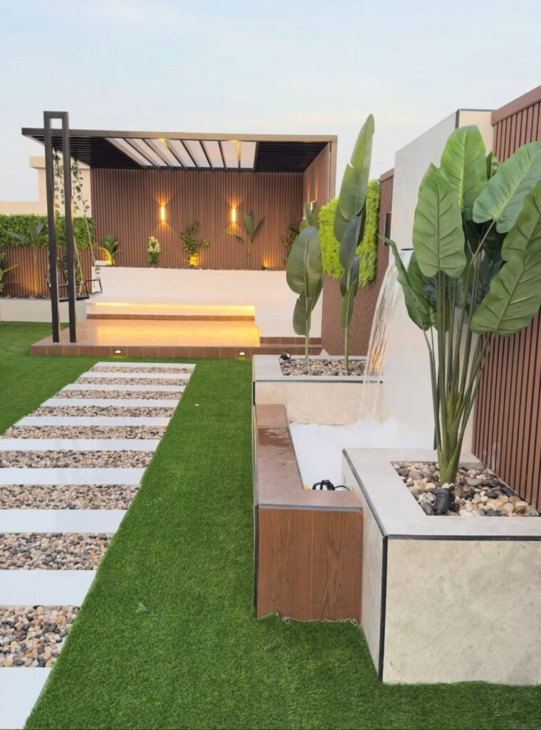تركيب الشلالات والنوافير لإضافة لمسة جمالية وصوت مائي مريح.