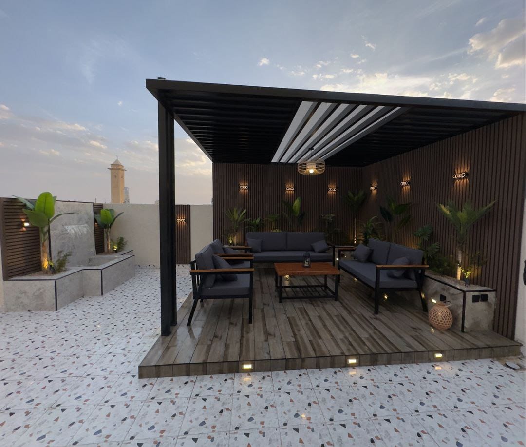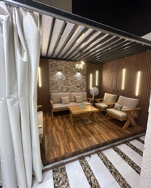 نحرص على تنفيذ جلسات خارجية مريحة ومظللة تلائم الحدائق، الفلل، الأسطح والمسابح، مع مراعاة أدق التفاصيل في التصميم والتنفيذ، لتحويل المساحات الخارجية إلى أماكن مثالية للاسترخاء والتجمعات العائلية.