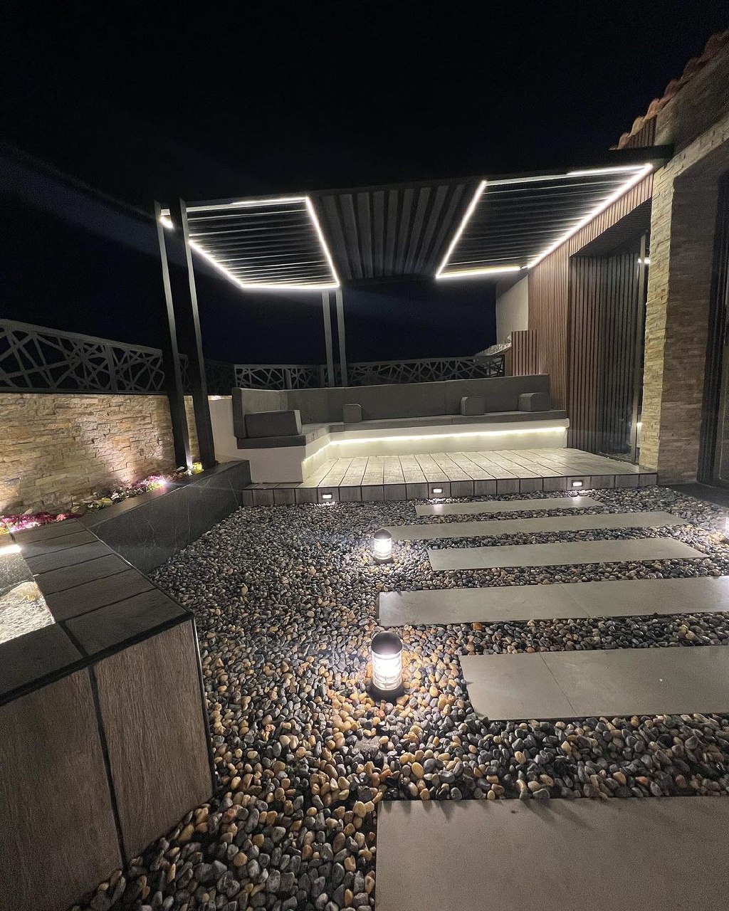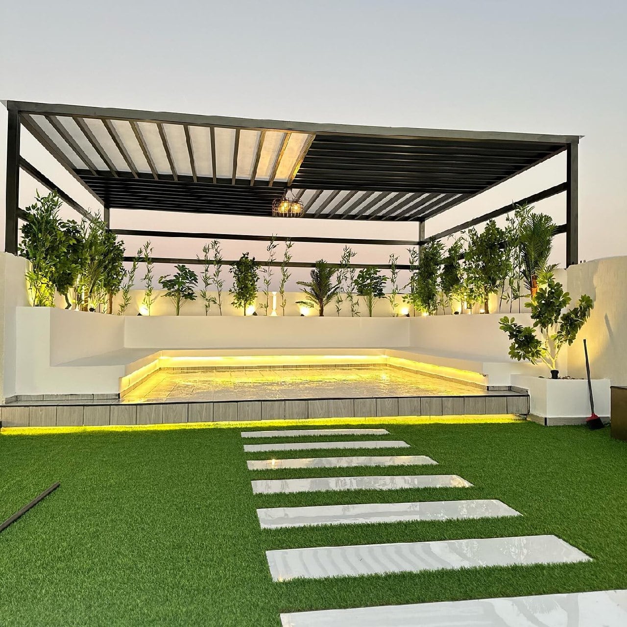 نستخدم مواد عالية الجودة وأنظمة ضخ حديثة تضمن كفاءة التشغيل وسهولة الصيانة، مع الاهتمام بأدق التفاصيل لتحقيق توازن مثالي بين الجمال والهدوء، وتحويل الحديقة إلى مساحة فاخرة تنبض بالحياة.
