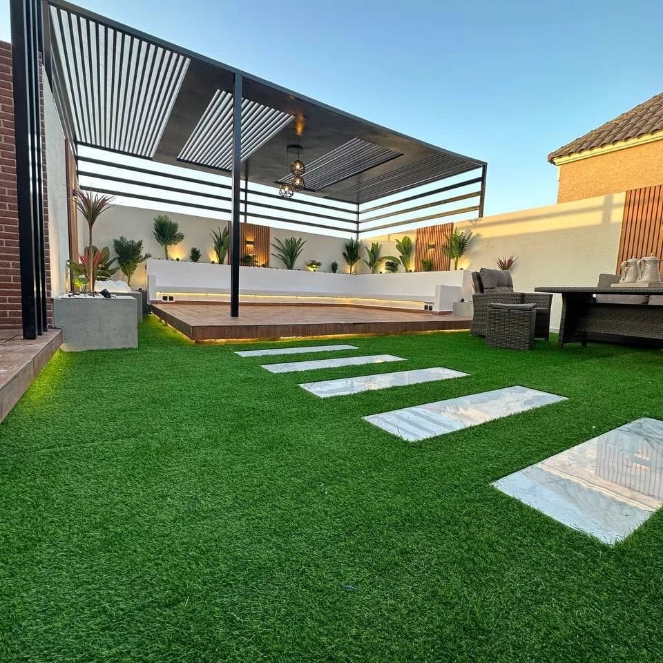 يتميّز العشب الصناعي بسهولة الصيانة، توفير المياه، ومقاومته للحرارة، مما يجعله خيارًا مثاليًا للفلل، الحدائق المنزلية، المسابح، الأسطح، والمناطق الترفيهية، مع لمسة جمالية دائمة طوال العام.