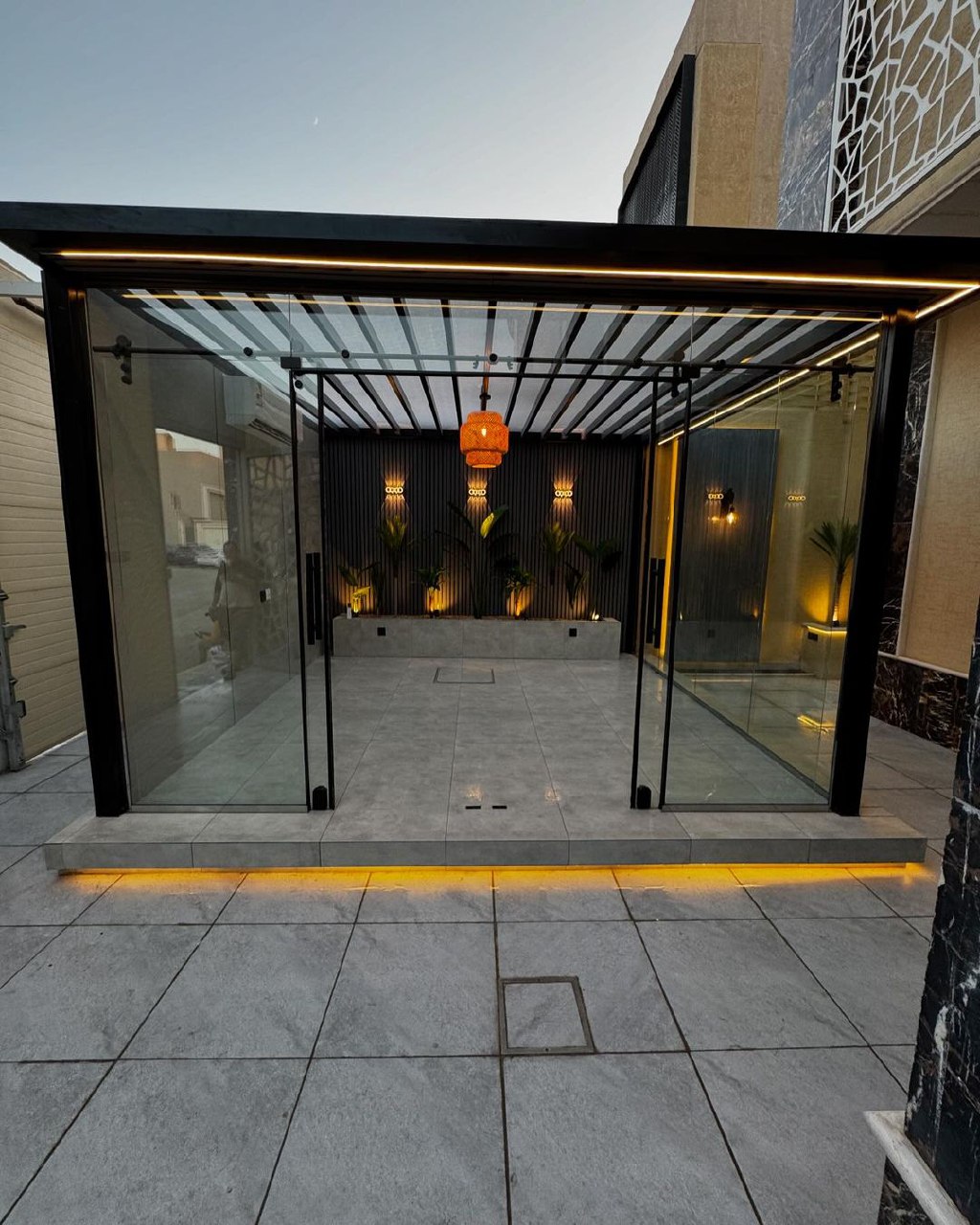 نستخدم زجاجًا عالي الجودة وهياكل متينة مقاومة للعوامل الجوية، مع الاهتمام بالعزل الحراري والسلامة، لضمان تجربة مريحة ومظهر فخم يضيف قيمة جمالية وعملية للمساحات الخارجية.