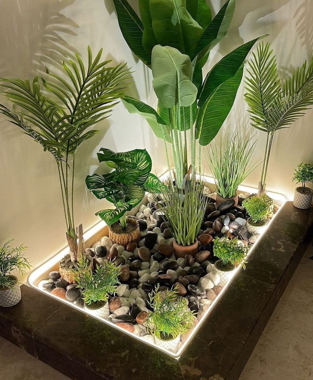 الأحواض الصناعية تُستخدم غالبًا لزراعة النباتات الصناعية أو كعنصر ديكوري بحت، وتتميّز بسهولة الصيانة وثبات المظهر طوال العام، مما يجعلها خيارًا مثاليًا للأماكن التي يصعب فيها الاهتمام بالنباتات الطبيعية.