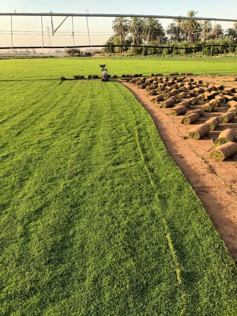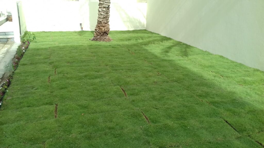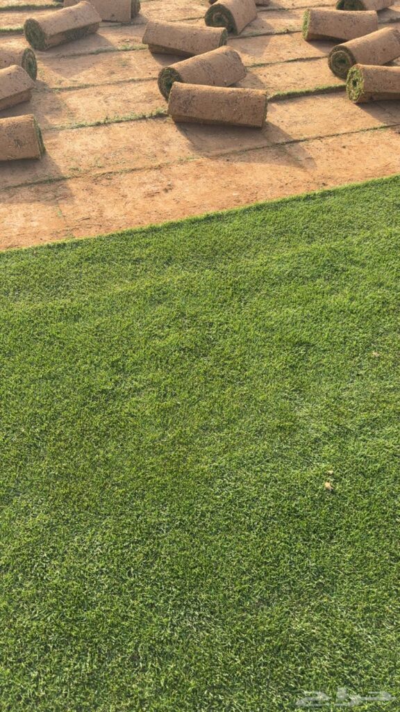 يتم ري العشب مباشرة بعد التركيب لضمان تثبيته.
